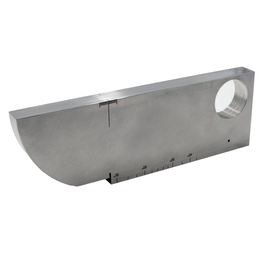 International shims no. 1 (V1) referenced in standard NF EN ISO 2400 for calibrating transverse and longitudinal wave transducers. Checks the point of emergence and the angle of the transducers. Read the information directly on the wedge.