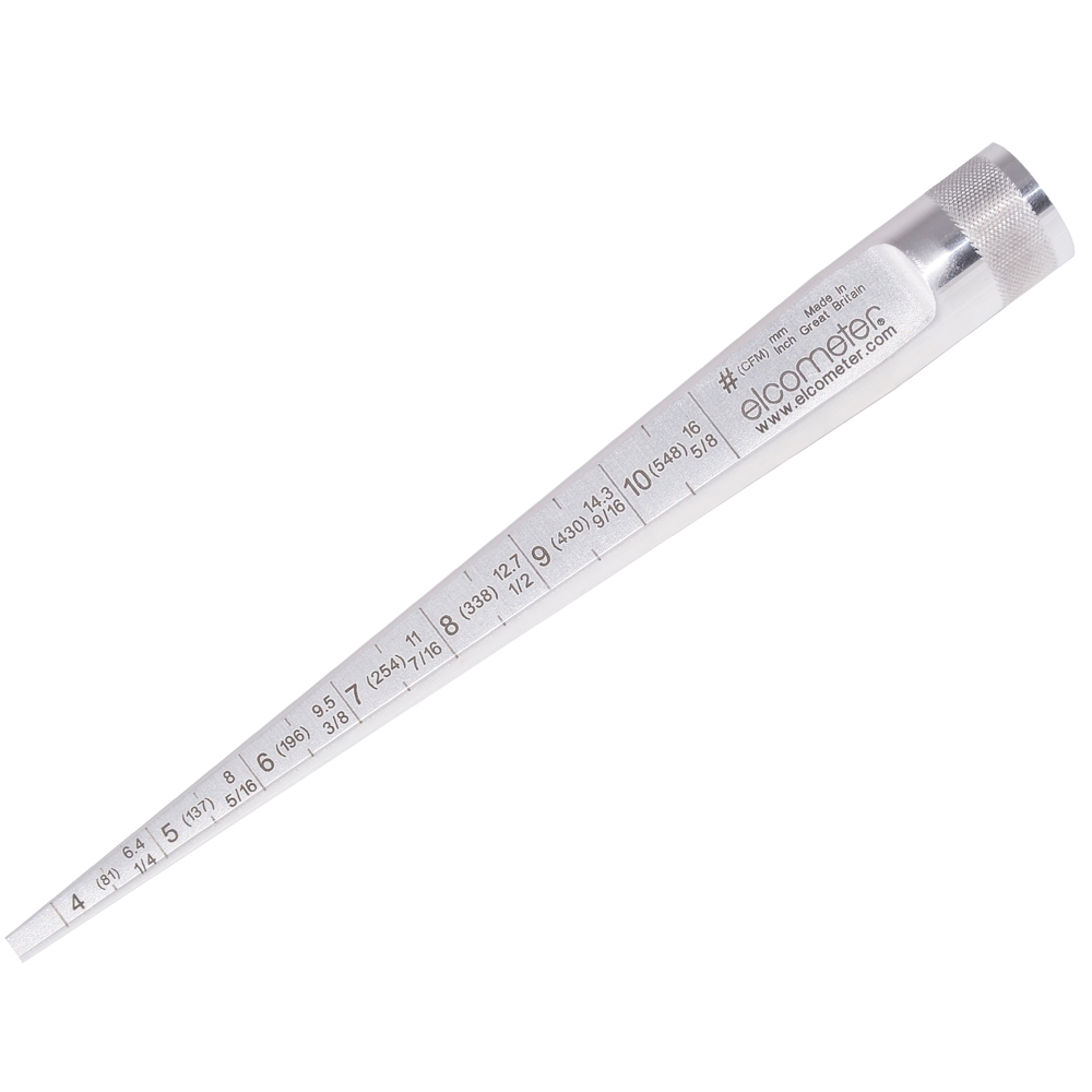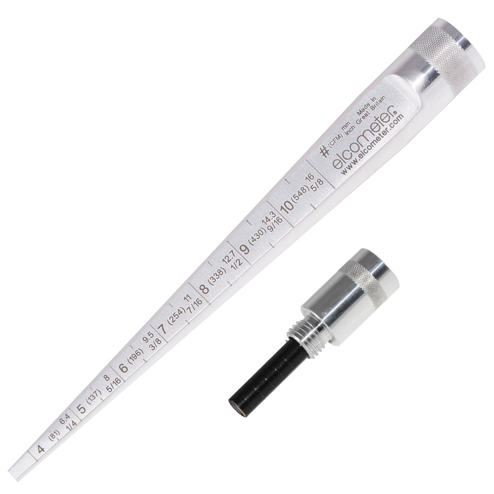 The Elcometer 103 Blasting Nozzle Gauge measures the size of the hole in a blasting nozzle.
