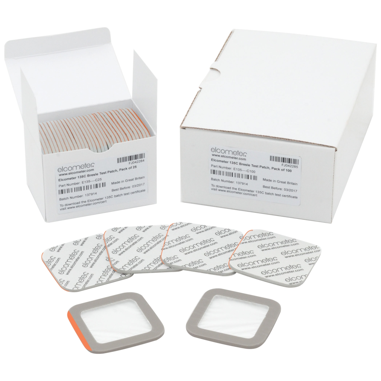No foam residue Elcometer 135C Bresle Test Patches are easy to peel off after testing; they leave no foam residue on the substrate and avoid the damage associated with surface cleaning (scraping). | Supplied with certificate for your peace of mind Elcometer 135C Bresle Test Patches are supplied with a Batch Cleanliness Certificate & Test Area Certificate in accordance with ISO 8502-6. |