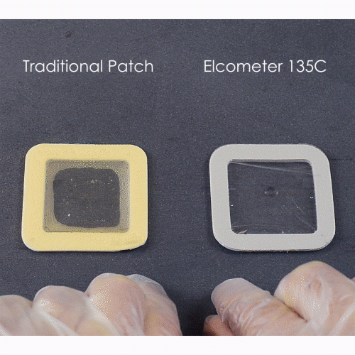 Watertight seal Strong and durable, Elcometer 135C Bresle test patches have a high quality adhesive which guarantees a perfect seal during the test. | Easy syringe insertion The new Elcometer 135C Bresle test patches have a thicker foam contour than traditional patches, making it easier to insert the syringe. |