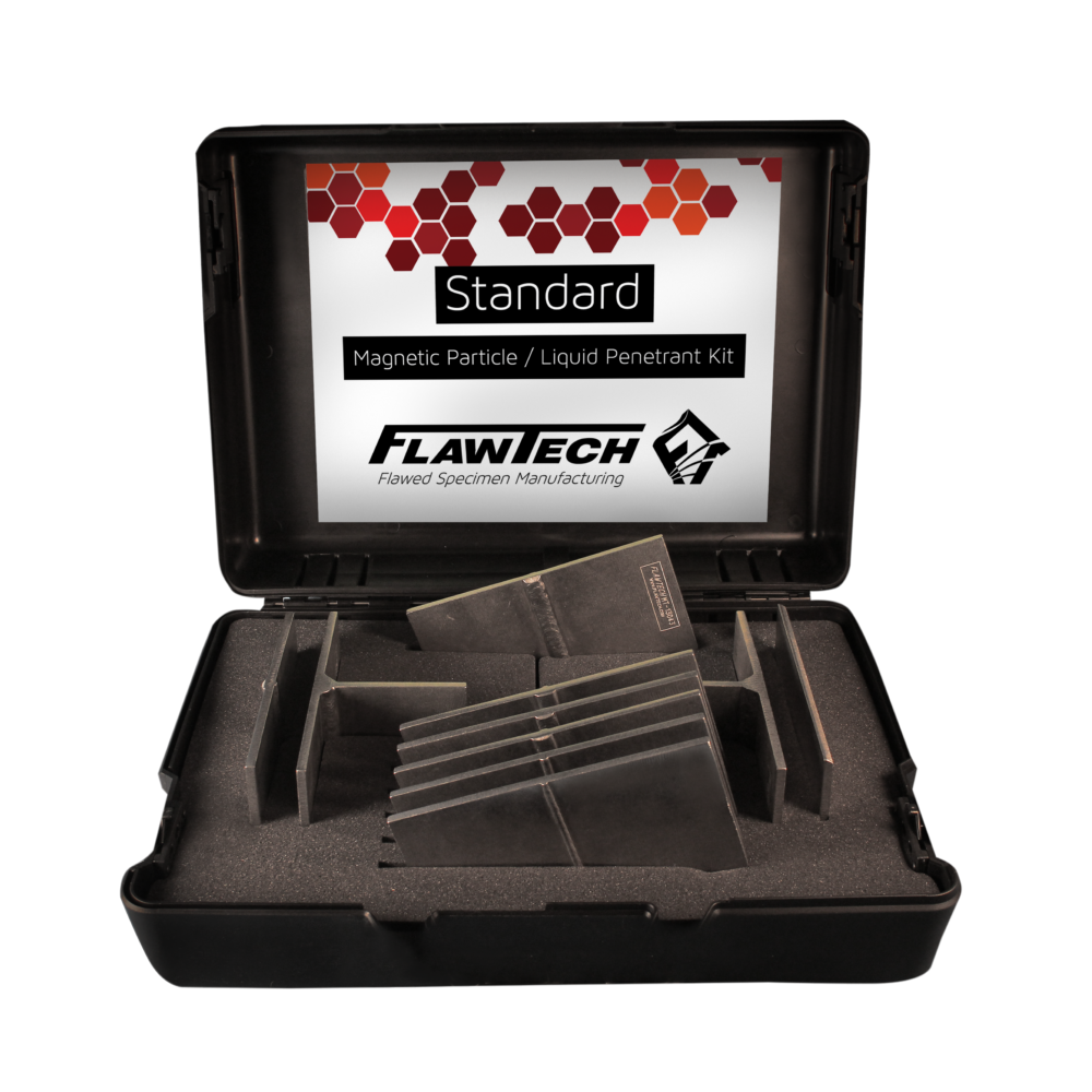 Each specimen contains 2 "REAL DEFECTS" randomly placed. The specimens are packed in a free carrying case, complete with a documentation package with "Flaw Truth" documented by CAD drawings with a standard tolerance of (+/-) 0.150" (4 mm).