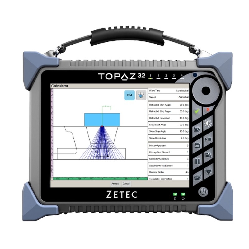 The TOPAZ32 is a high-performance 32-channel phased array ultrasonic tester (PAUT) and a complete solution for your inspections. Optimally designed for inspection applications in the oil and gas, power generation, manufacturing and transportation industries, the TOPAZ32 helps increase productivity, reduce labor time and reduce the total cost of ownership of the equipment.